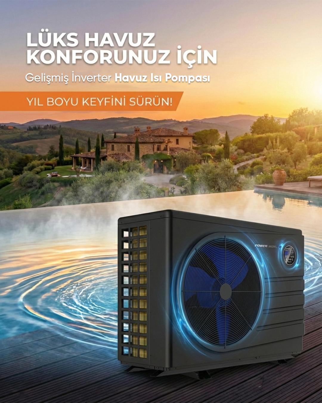 Havuz keyfinizi dört mevsim yaşayın! İnvertör teknolojisine sahip havuz ısı pompası, suyunuzu istediğiniz sıcaklıkta tutarken yüksek enerji verimliliği sağlar.