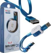 Powermaster PM-26347 3 IN 1 Mavi Şarj Kablosu