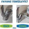 Fayans, Derz, Armatür, Duşa Kabin Temizleyici Banyo ve tuvalet fayans yüzeyindeki derz aralarında sudan kaynaklı kireçlenmeden dolayı ortaya çıkan sarılık ve siyahlıklar da etkin sonuç vermektedir. Uygulanan yüzeyde bekletilmeden direkt olarak uygulanır ve bol su ile durulanır.
