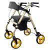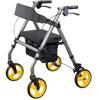 Poylin Ekonomik Rollatör P581, 9 kg ağırlığıyla hem hafif hem de dayanıklı bir yapıya sahip olup, iç ve dış mekan kullanımına uygundur. Oturma yüzeyi sayesinde kullanıcılar yürüyüş sırasında istedikleri zaman dinlenebilir. 80–89 cm arasında ayarlanabilen tutma yüksekliği, farklı boylardaki kullanıcılar için uyum sağlar. 8 inç boyutundaki silikon dolgu tekerlekleri konforlu ve dengeli bir sürüş sunarken, el fren sistemi maksimum kontrol imkânı tanır. Ön kısmında yer alan taşıma çantası kişisel eşyaların kolaylıkla taşınmasını sağlar. Champagne sarı, silver ve grey renk kombinasyonlarıyla estetik bir tasarıma sahiptir. Katlanabilir yapısıyla taşıma ve depolama kolaylığı sunan bu model, uygun fiyatlı ve fonksiyonel bir yürüteç arayan kullanıcılar için ideal bir çözümdür.