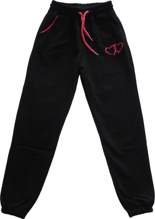 - Baskılı tasarımı ile genç ve dinamik bir stil sunan kalp desenli cepli penye kız eşofman altı.