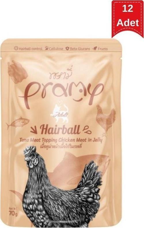 Pramy Hairball Jöle İçinde Ton Balıklı ve Tavuk Etli Kedi Konservesi 70gr x12 Adet