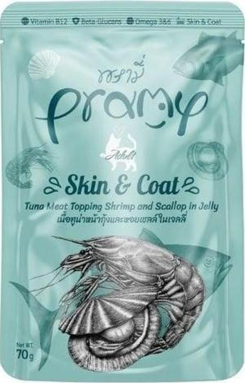 Pramy Jöle İçinde Karidesli Deniz Taraklı ve Ton Balıklı Pouch Yetişkin Konserve Kedi Maması 70 Gr