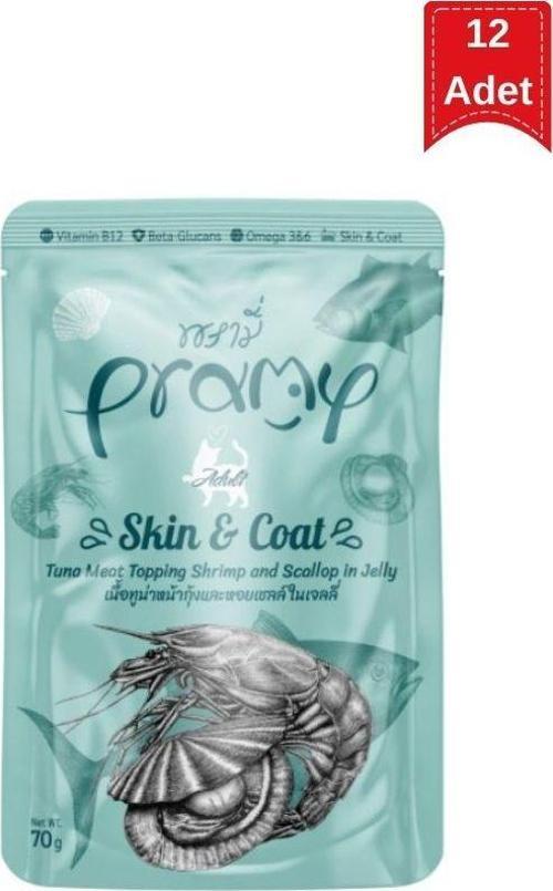 Pramy Skin Coat Jöle İçinde Karidesli Deniz Taraklı ve Ton Balıklı Kedi Konservesi 70gr X 12 Adet