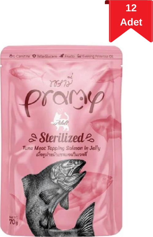 Pramy Jöle İçinde Somonlu ve Ton Balıklı Kısırlaştırılmış Kedi Konservesi 70gr x12 Adet