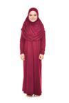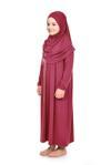Pratik Başörtülü Tek Parça Kız Çocuk Namaz Elbisesi 9-11 Yaş Kırmızı