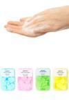 5 farklı renk ve koku: Pembe, yeşil, sarı ve mavi kutularda toplam 500 yaprak sabun içerir.