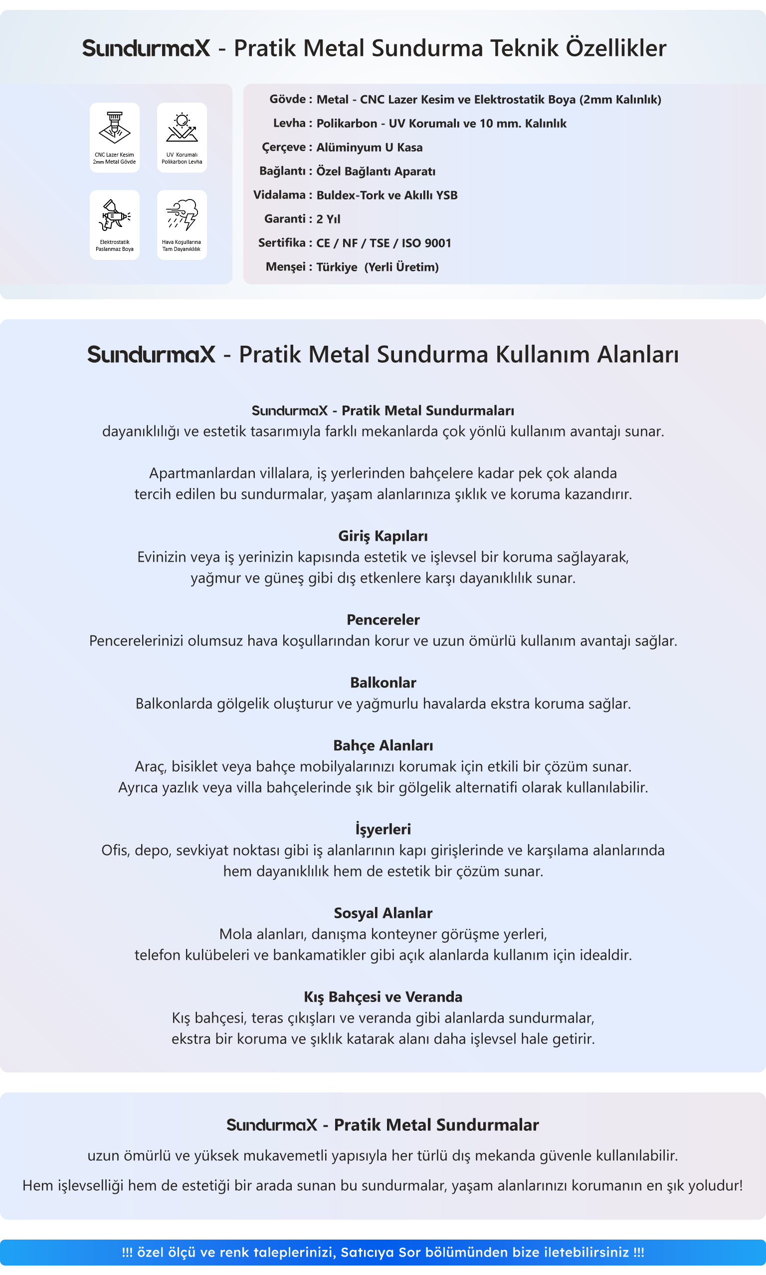 SundurmaX Pratik Metal Sundurma (175X100) Selçuklu Serisi Kapı ve Pencere Üstü Sundurma Koruma Gölgelik Kar Yağmur Kanopi (Antrasit - Füme)