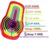 250 ml,125 ml, 85 ml, 60 ml, 15 ml, 7,5 ml 5'li Ölçeklerin mutfağınızda olması büyük kolaylık sağlayacaktır.