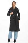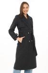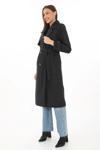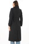 Mzp Kartan Premium Kadın Kaşe Kaban Uzun Boy, Balık Sırtı Yünlü Kaşmir Dokuma, Kruvaze Kuşaklı Astarlı - Siyah