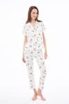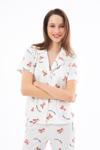 Cottonhill Premium Kadın Pijama Takımı Ayıcık Desenli Yumuşak Dokulu Kısa Kollu Gömlek Yaka