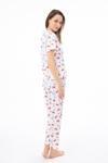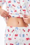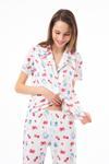 Cottonhill Premium Kadın Pijama Takımı Kiraz Desenli Yumuşak Dokulu Kısa Kollu Gömlek Yaka