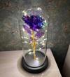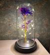 Premium Kristal Solmayan Gül Işıklı Cam Fanus - Mor