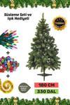 Premium Kutu Süsleme Seti Yılbaşı Çam Ağacı Renkli Işığı Yeni Yıl Süsleri Noel Paketi 180 Cm 330 Dal