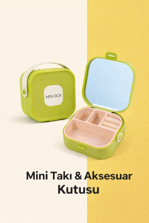 Yeşil Mini Aynalı Takı Kutusu; doğallığı seven, düzenli ve pratik bir yaşam tarzını benimseyen kullanıcılar için tasarlanmış şık ve fonksiyonel bir takı organizer modelidir.
