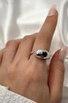 Ose Shop Pırlanta ışıltısında zirkon ve granat taşlı siyah rodajli ayarlanabilir gümüş lüks yüzük