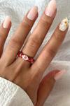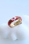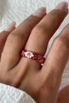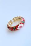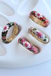 Premium Seri Çok Renkli Çiçek Desen Mineli Ayarlanabilir Kadın Çelik Yüzük