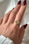 Pirinç Gümüş Renk Zirkon Taşlı Düğüm Model Kadın Yüzük  - Image 1