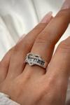 Eva Jewelry Baget Taşlı Gümüş Kaplama Ayarlanabilir Kadın Yüzük