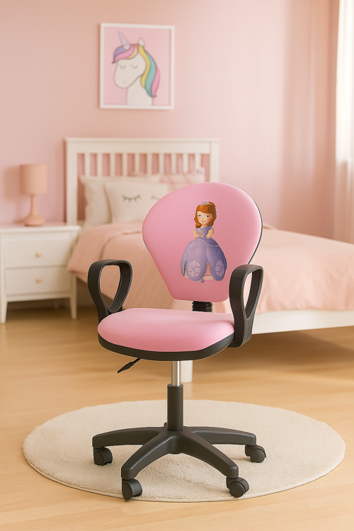Kız çocukları için özel olarak tasarlanan Pembe Prenses Baskılı Çalışma Koltuğu, eğlenceli görünümü ve ergonomik yapısı sayesinde çocuk odalarına hem renk hem konfor katıyor.
