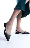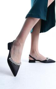 Preshley Kadın Best Siyah Saten Taşlı Arkası Açık Lastikli 2,5 Cm Kısa Blok Topuklu