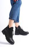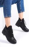 Preshley Kadın Cesi Siyah Streç Ve Bağcık Tedaylı Bilek Boy Termo Taban Bot