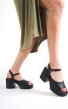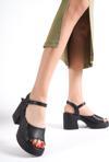 Preshley Kadın Divo Siyah Ortopedik Iç Taban Platform Topuk Sandalet