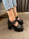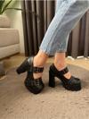Preshley Kadın İzabel Sıyah Deri İki Tokalı Kapsul Detaylı 12 Cm Platform Topuklu Ayakkabı