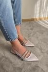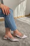 Preshley Kadın Linda Gümüş Saten İki Sıra Taşlı Arkası Acık 2 Cm Topuklu Sivri Burun Babet