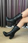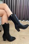 Preshley Kadın Liva Siyah Cilt Nakışlı 7 Cm Topuklu Fermuarlı Koyboy Çizme
