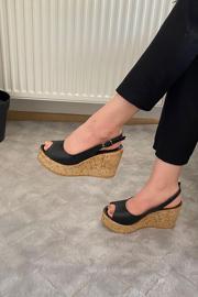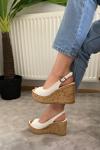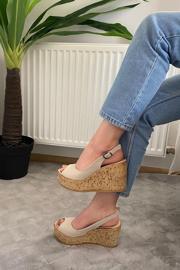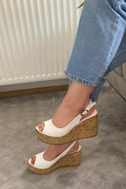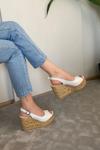 Preshley Kadın Mantara Beyaz Cilt 10 Cm Dolgu Topuklu Mantar Taban Önü Arkası Acık Ayakkabı