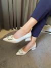 Kadın Pita Beyaz Deri Tokalı  Stiletto Alcak Ökçe Abiye Ayakkabı