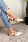 Kadın Tena Beyaz Cilt Arkası Acık Sivri Burun Günlük Babet