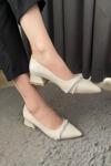 Preshley Kadın Valeri Krem Çapraz Taşlı Stiletto Alcak Ökçe Abiye Ayakkabı