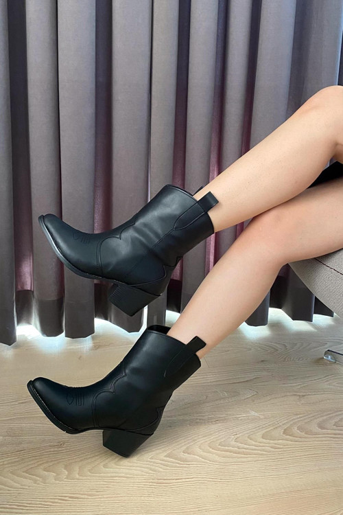 Kadın Vendy Kısa Topuklu Kovboy Bot Materyal: Vegan Deri Taban Materyali: Hazır Taban Topuk Boyu: 5 cm Çekimlerde 36 numara kullanılmıştır.