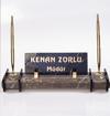 %100 Doğal Mermer'den üretilen masa isimliğimiz tasarımıyla masalarınıza şık bir görüntü kazandıracaktır. Ürün üzerinde yer alan altın renk aksesuarları, ürün çevresini saran siyah parlak yükseltici ayakları ile masanıza prestij katacaktır. İsimlik alanına yazılacak isim 1.6mm kalınlığında özel kabartma malzemesi kullanılarak lazer kesim tekniği ile üretilmektedir.