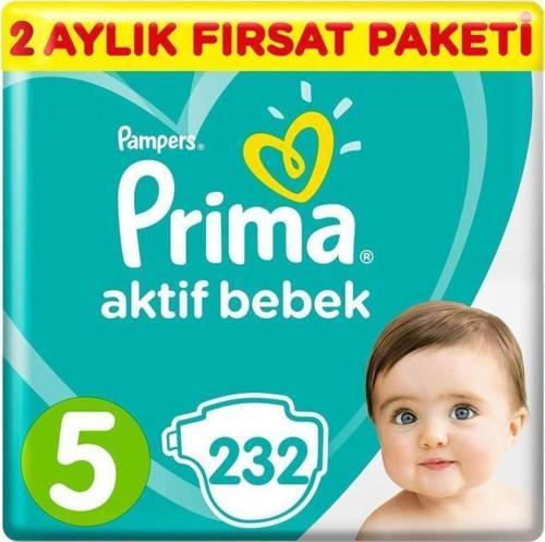 Prima Bebek Bezi Aktif Bebek 5 Beden 232 Adet Junior 2 Aylık Fırsat Paketi