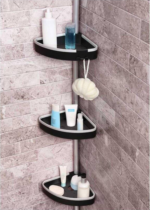 Venta 3'lü Köşe Rafı Aynasız-Siyah 260 cm tavan yükseklğine kadar uygulabilir. montaj için alet vida gerekmez paslanmaz aluminyum borular 2 adet havlu askısı ekstra derin,yüksekliği ayarlabilir 3 adet raf 20,5