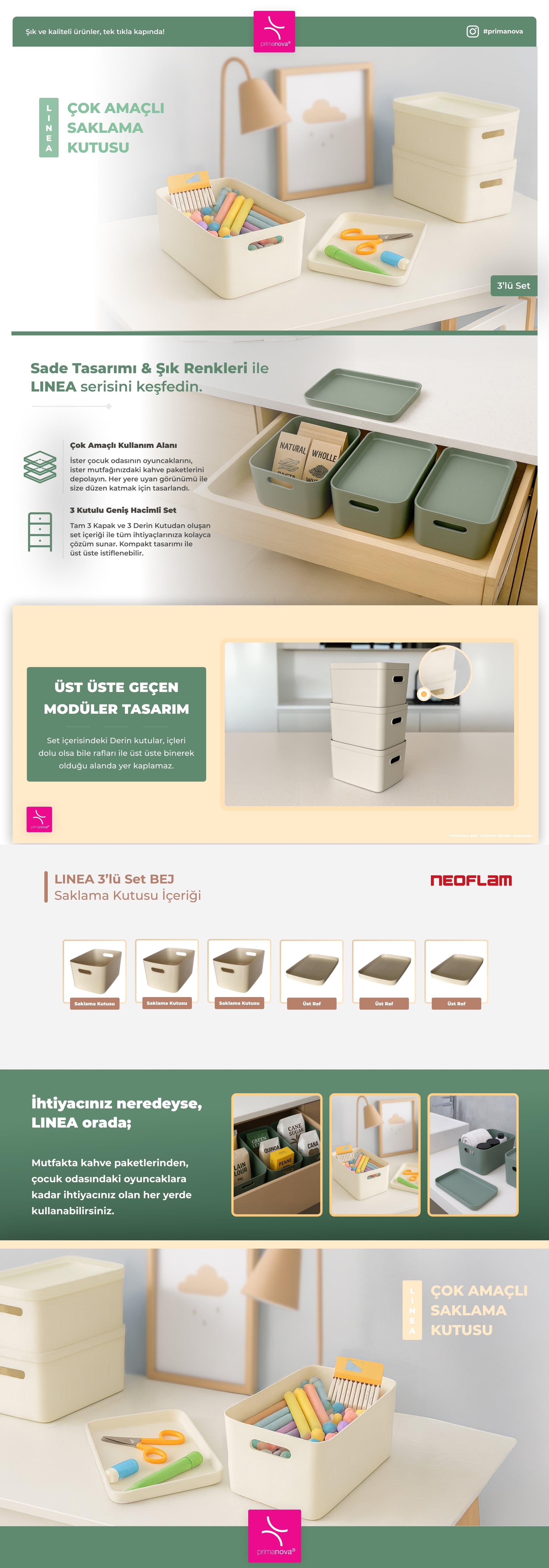Linea 3'lü düzenleyici seti ev ve ofis düzeninizi kolaylaştırır. Eşyalarınızı kategorize etmek ve düzenli bir görünüm sağlamak için idealdir.