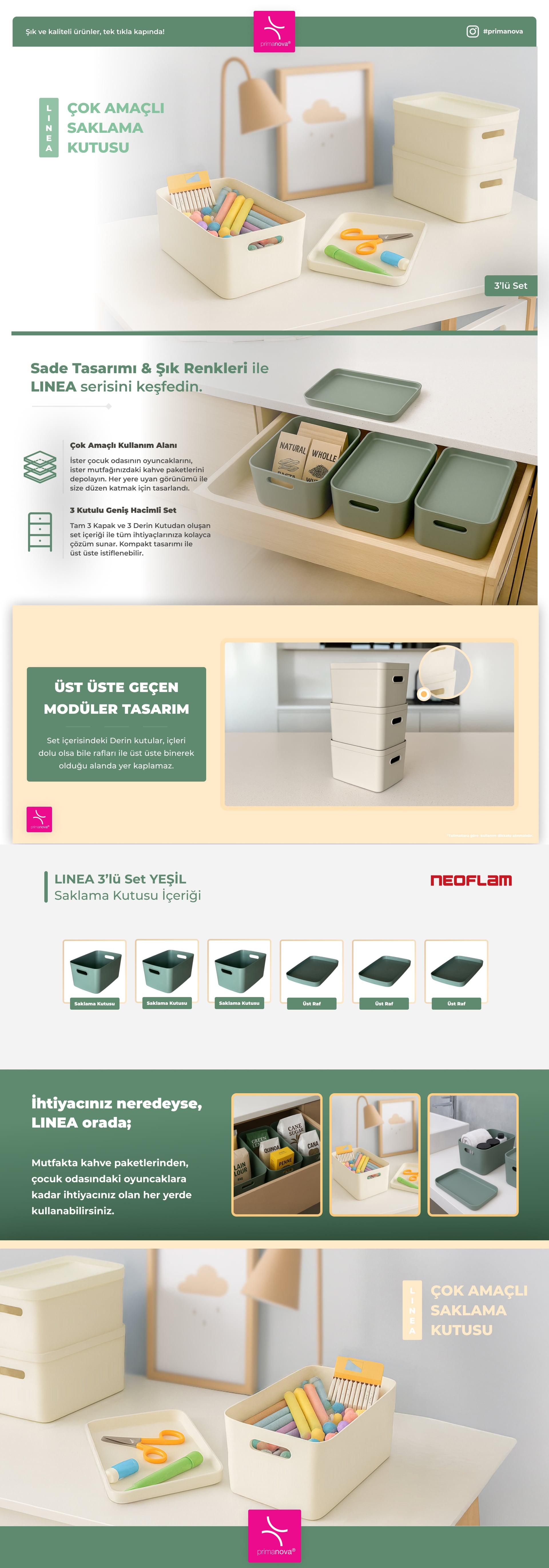 Primanova Linea 3'lü Dolap İçi Mutfak Çocuk Odası Raf Düzenleyici Saklama Kutusu - Yeşil