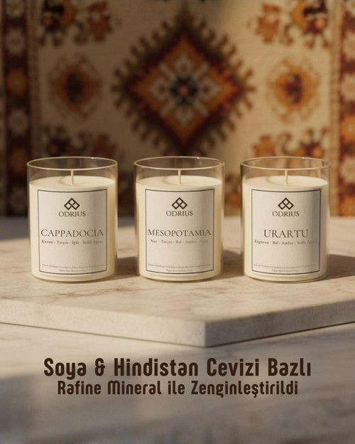 Primeyol Baharatlı Yoğun Kışlık Kokulu Mum Seti – Nar, Oud, Tarçın, Amber – 3’Lü Mum Seti (3X150G) - Odrıus