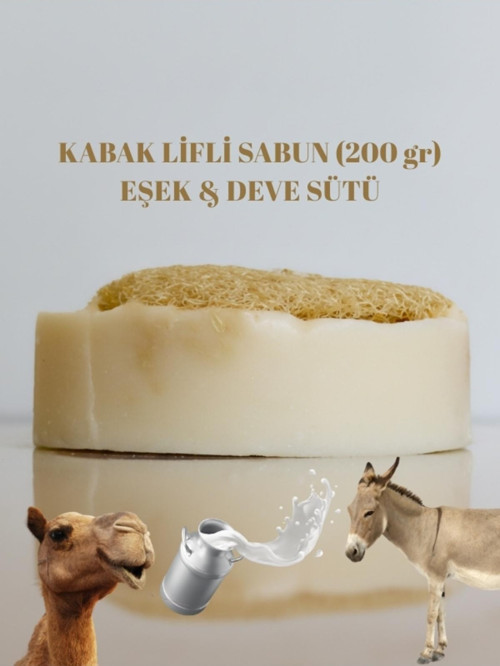 Primeyol El Yapımı Kabak Lifli Eşek Deve Sütlü Sabun 200 Gram Bitkisel Lifli Peeling Etkili El Vücut Sabunu
