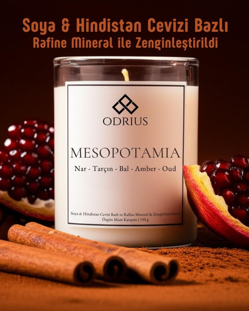 ODRIUS - MESOPOTAMIA Premium Kokulu Mum – Evinize Güçlü ve Oryantal Bir Koku Dokunuşu MESOPOTAMIA, Güneydoğu Anadolu’nun kadim medeniyetlerinden ve zengin kültürel mirasından ilham alan, el yapımı premium kokulu mumdur.
