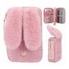 Princess Mimi 2 Katlı İçi Dolu Kalem Çantası, yumuşacık dokusu ve sevimli tavşan tasarımıyla öne çıkar. Tamamen pembe suni kürkle kaplı olan çanta, uzun sarkık tavşan kulakları, altın rengi işlemeli uykulu gözleri ve kalp şeklindeki burnuyla çocukların hayal gücünü harekete geçirir. İç kısmındaki kalp desenleri de tasarıma şirin bir detay ekler.