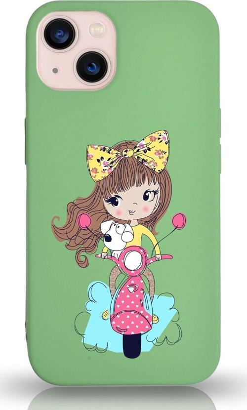 PrintiFy Apple Iphone 13 Uyumlu Lansman Kılıf Vespagirl Tasarımlı Altı Kapalı Içi Kadife Kaplı Silikon Kapak