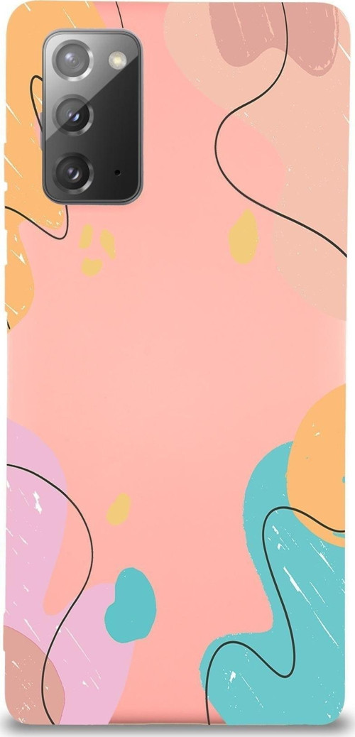 PrintiFy Samsung Galaxy Note 20 Uyumlu Lansman Kılıf Karışık Renkler Tasarımlı Içi Kadife Kapak-Pembe