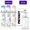 Privacy Addiction Woman Edt 50 Ml & Emotion Aqua Kiss, Violet, Natural Bloom 3x150 Ml