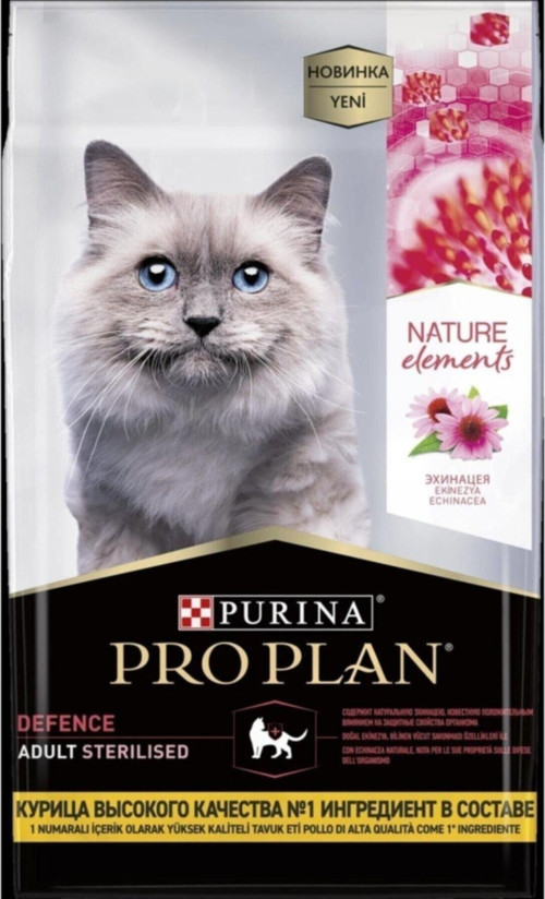 Pro Plan® Nature Elements kısırlaştırılmış yetişkin kediler ve kısırlaştırılmış kediler için yüksek tavuk içeriğine sahip kuru mama. Vücudun koruyucu özellikleri üzerindeki olumlu etkisi ile bilinen doğal Ekinezya içerir.