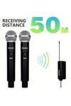 Profesyonel Çiftli Kablosuz Mikrofon Seti Karaoke Şarj Edilebilir 50 Metre Mesafe