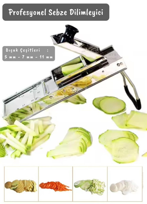 Jet' s Home Profesyonel Mandolin Sebze Dilimleyici Paslanmaz Jülyen Kesici Çelik Doğrayıcı Sebze Kesici